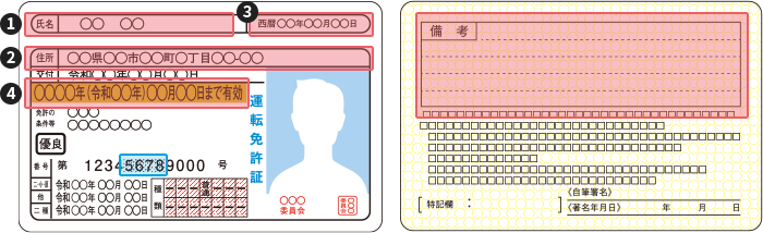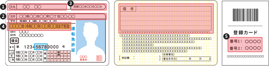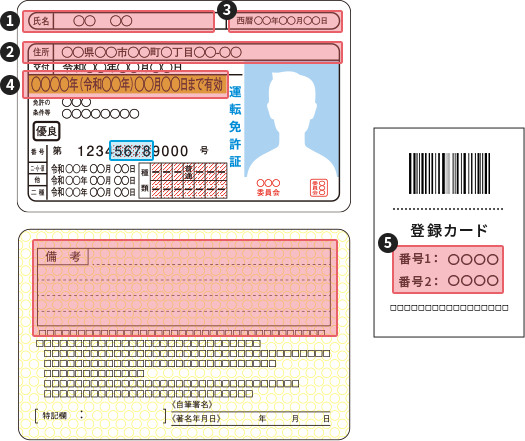 - 運転免許証取得/更新時に設定した2組の❺暗証番号4桁が必要。
