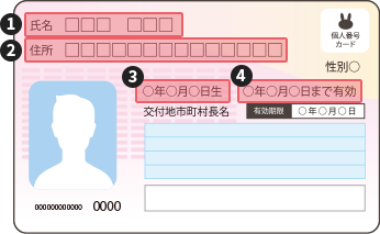 - 申込時に入力した❶氏名・❷住所・❸生年月日と一致していること。