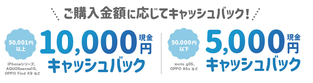 【〈公式Web限定〉端末購入で現金最大1万円キャッシュバック特典】