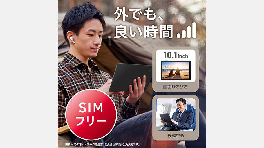 SIMフリー・DSDS対応で、場所を選ばず自由に使える10.1インチタブレット。