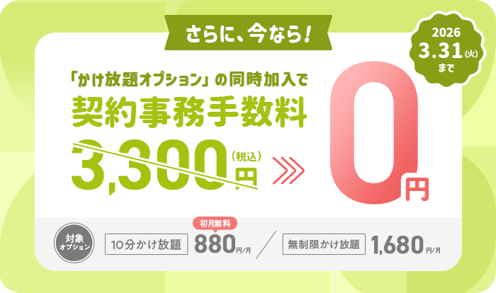 【契約事務手数料0円!かけ放題スタートキャンペーン】