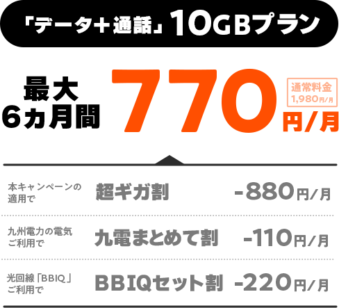 | 10GB | 770円/月 (割引前:1,650円/月) |