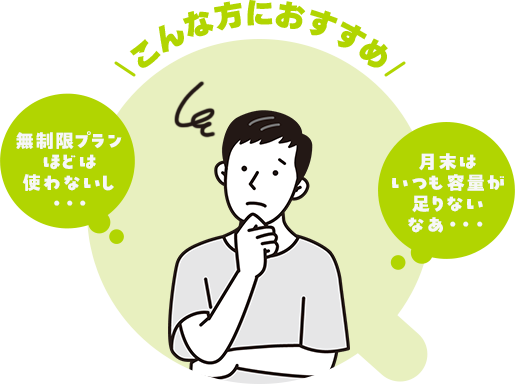 余ったデータはお翌月に繰り越しできるから、毎月のデータ使用量に合わせておトクに使える!