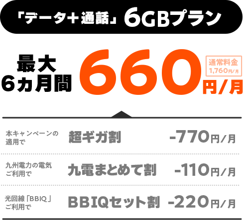 | 6GB | 660円/月 (割引前:1,430円/月) |