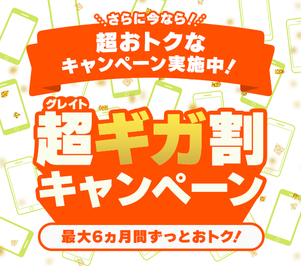 - ・本キャンペーンは、「超ギガ割キャンペーン」「契約事務手数料0円!かけ放題スタートキャンペーン」との併用は可能ですが、その他の特典との併用はできません。